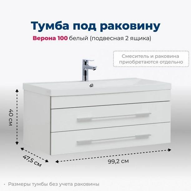 Тумба с раковиной Aquanet Верона 100 белый (подвесная 2 ящика)