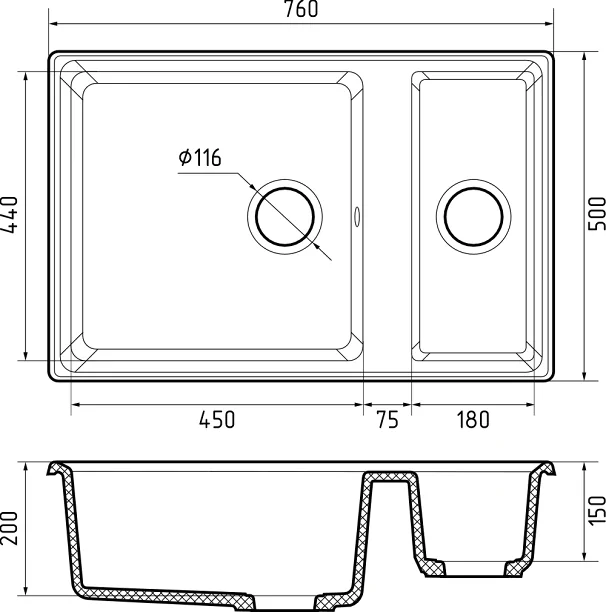 Мойка для кухни GranFest Level LV-760 K графит