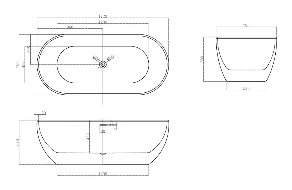 Акриловая ванна ABBER AB9241MW белая матовая