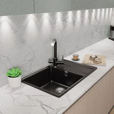 - Безупречный стиль композиции: цвет дозаторов совпадает с фирменными цветами моек и смесителей ULGRAN.