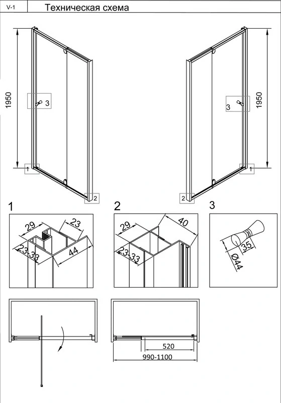 Доставка Душевая дверь Veconi Vianno VN-26, 1100x1950, Хром, стекло прозрачное