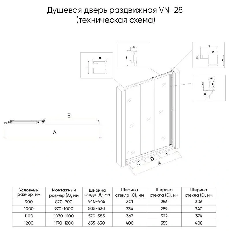 Доставка Душевая дверь Veconi Vianno VN-28B, 1200x1950, Черный матовый, стекло прозрачное