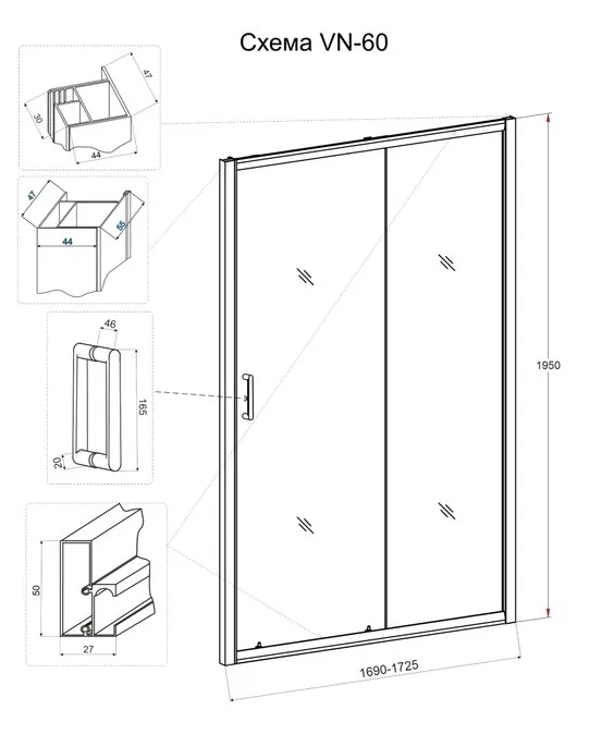 Доставка Душевая дверь Veconi Vianno VN-60B, 1900x1950, Черный, стекло прозрачное