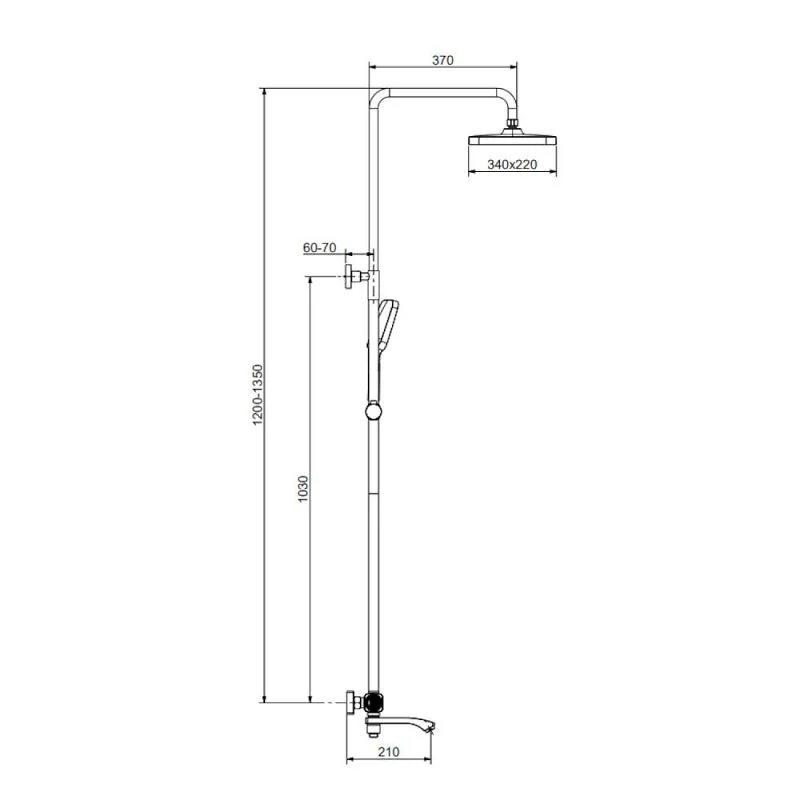 - Регулируемая по высоте душевая штанга: 1200-1350 мм.