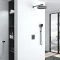 Верхний душ ABS (режим работы Spray) 4-х режимный ручной душ из ABS cо слайдером (Rain - Pulsating Rain - SPA - Mist) Встраиваемый смеситель c 2-х режимной регулировкой напора воды Держатель ручного душа из латуни Размер верхнего душа 300мм Шланг для душа из ПВХ