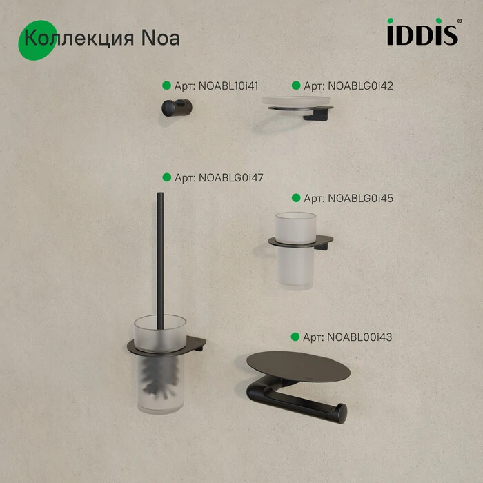 Каждый предмет из новой коллекции NOA минималистичен на вид и максимально функционален, благодаря чему способен выгодно подчеркнуть любой современный или классический дизайн. Коллекция представлена всеми необходимыми аксессуарами для создания единого стиля туалетной или ванной комнаты – с ними ежедневный уход станет еще более комфортным. Туалетный гарнитур трендового черного цвета будет элегантно смотреться в темных интерьерах и мягко балансировать яркие, цветные. Отличительная особенность аксессуара – подвесная конструкция и колба из матового стекла, которые придают ему исключительную воздушность и легкость. • Ерш IDDIS® прослужит дольше благодаря прочной и стойкой к коррозии стали. • Мягкая уплотнительная прокладка надежно фиксирует стеклянную колбу в держателе и предотвращает повреждение изделия. • Крепежные элементы скрыты корпусом, что обеспечивает привлекательный и аккуратный внешний вид аксессуара. • Гарантия на аксессуары IDDIS® – 5 лет. (с) Авторский текст, май 2021 г.