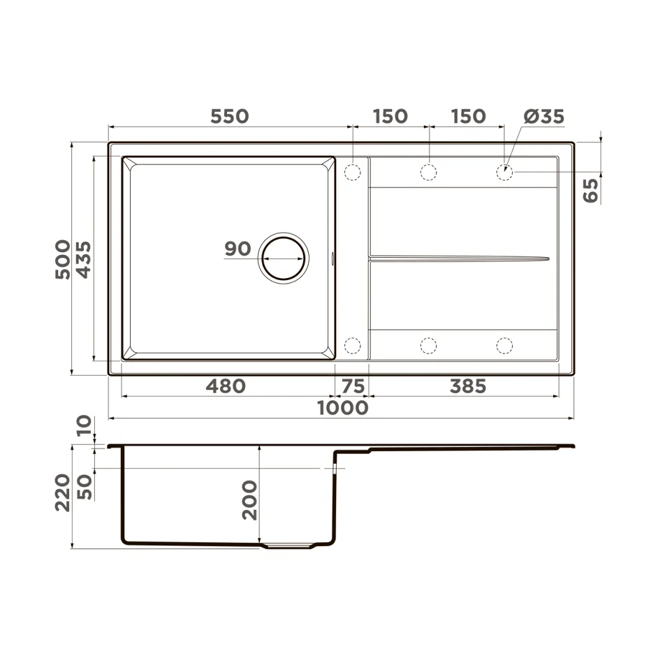 В комплекте стильный кран для чистой воды.