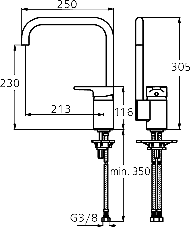 - Глубина 200мм считается оптимальной для кухонных моек: не приходится напрягать спину и брызги при сильном напоре воды не разлетаются во все стороны.
