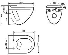 Универсальное межосевое расстояние под шпильки для крепления унитаза 180/230 мм, что подходит для унитазов всех моделей и типоразмеров.