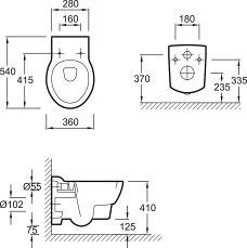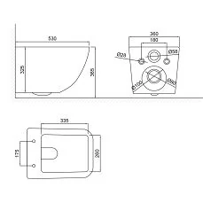 Расстояние между болтами 18/23 см, выходной патрубок для унитаза диаметром 9 см, редуктор диаметром 9/11 см.