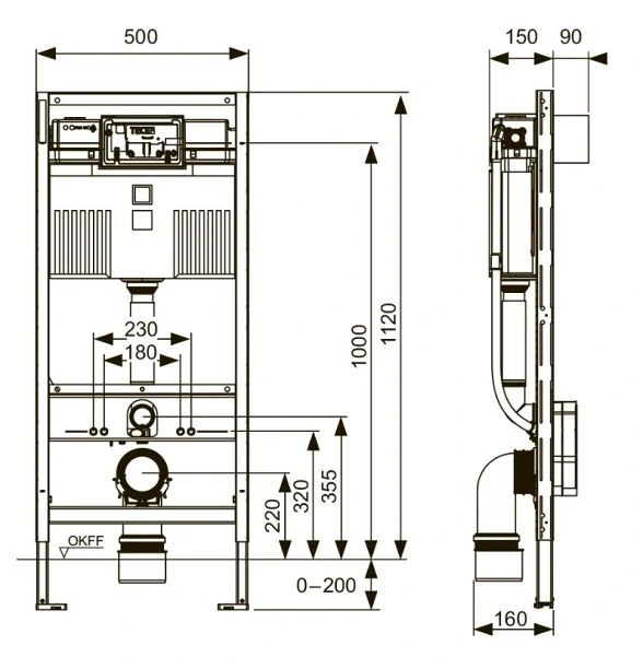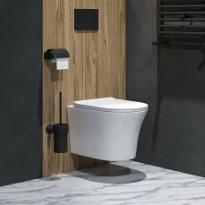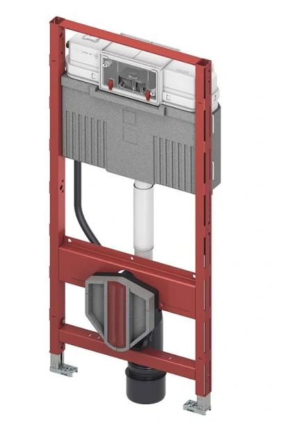 Инсталляция для подвесного унитаза Tece Base со смывным бачком скрытого монтажа в комплекте с креплением для монтажной рамы, со звукоизоляционной пластиной, с пластиковой кнопкой смыва черного цвета. Прочная стальная рама.