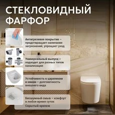 - Объем бачка 6 л: настраиваемый объем малого смыва – от 3 до 5 л, большого – от 4 до 6 л