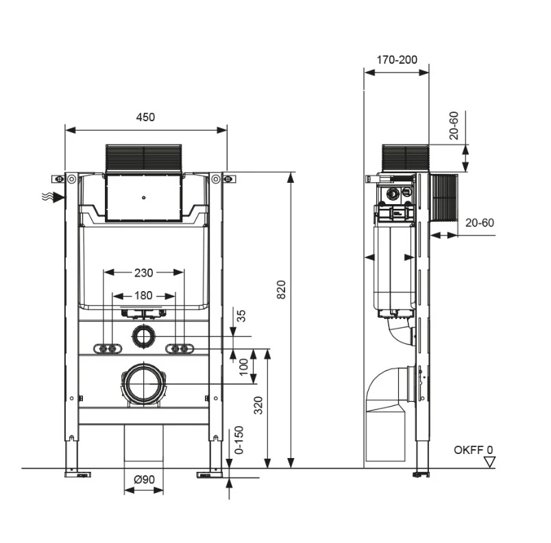 Инсталляция TECEspring profil, высота 820 мм