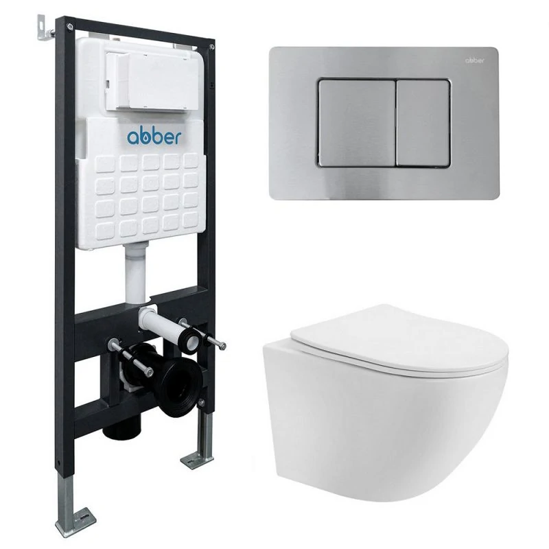 Отзывы Комплект подвесной унитаз ABBER Bequem AC1100T белый с инсталляцией AC0105 и кнопкой AC0120MCH матовый хром