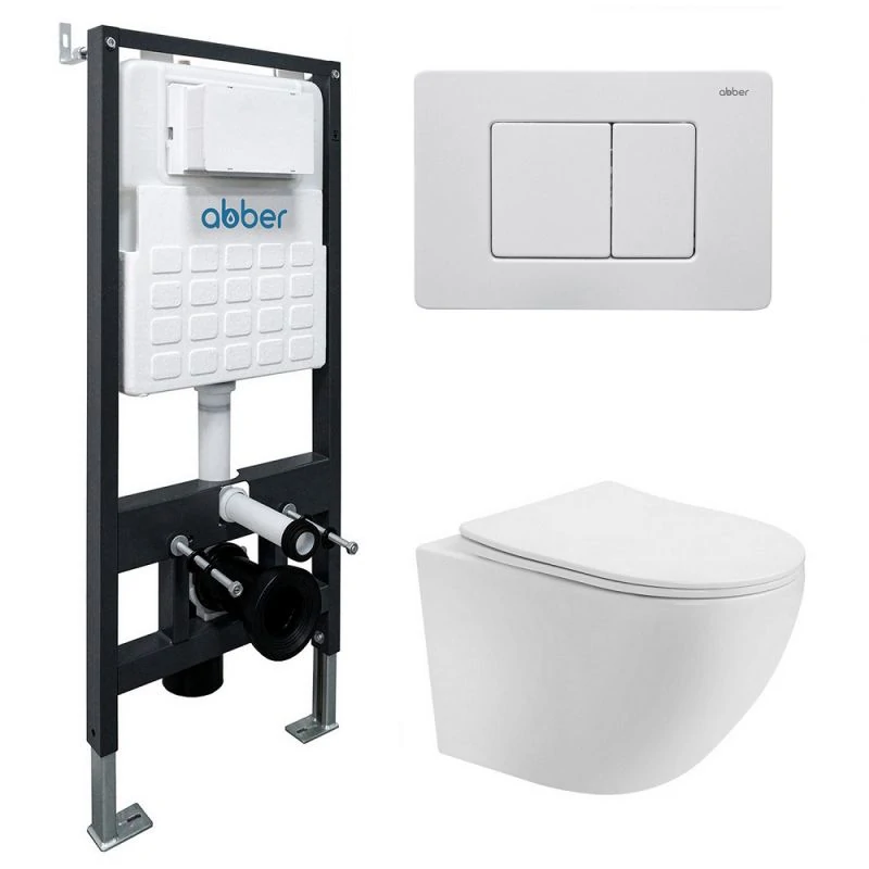 Доставка Комплект подвесной унитаз ABBER Bequem AC1100T белый с инсталляцией AC0105 и кнопкой AC0120MW белая матовая