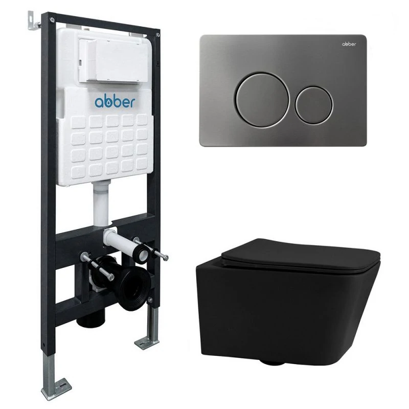 Отзывы Комплект подвесной унитаз ABBER Rechteck AC1201MB черный матовый с инсталляцией AC0105 и кнопкой AC0121MCH матовый хром
