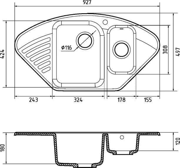 Закругленные внутренние углы не только облегчают уход, но и добавляют стиля и эргономичности. Глубина чаши 180 мм — оптимальна для комфортного использования.