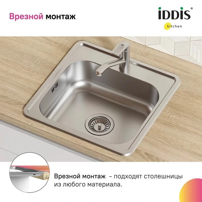 Отзывы Мойка с сифоном арт. S11UPS0i84, нерж. сталь, шелк, 485*485, Strit S, IDDIS, STR48S0i77S