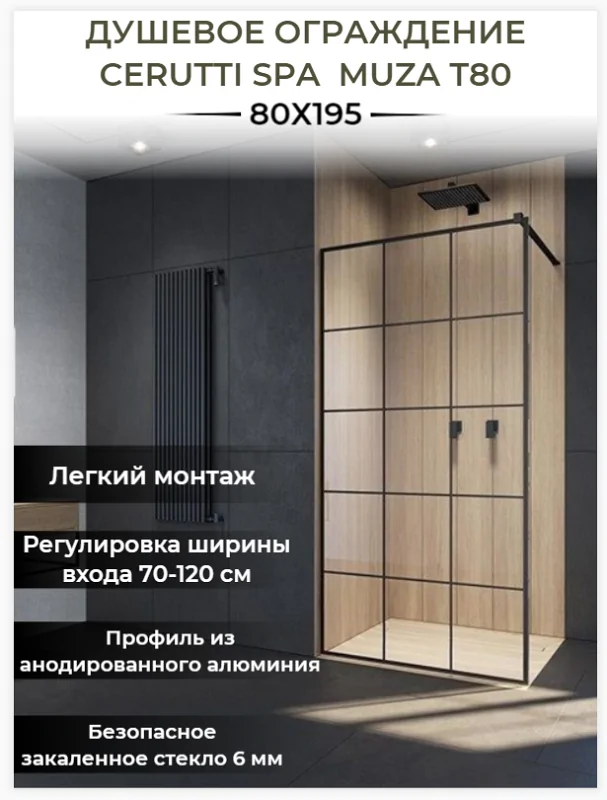 Ограждение MUZA T80 душевое Ceruttispa без поддона (80x195)