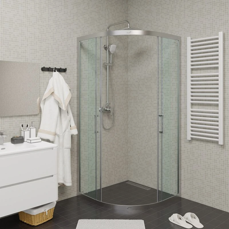 Душевой уголок Ceruttispa VIVA 100 без поддона Размер: 100х100х195 см Уголок закругленной формы экономит полезную площадь в ванной. Универсальный дизайн позволяет использовать модели в санузле с любым оформлением. Достоинства: • Двойные металлические ролики Doppi. Створки ходят плавно и не соскакивают с направляющих. • Раздвижные двери образуют вход комфортной ширины, сохраняют полезную площадь ванной комнаты. • Вертикальные ручки из чистой стали Acciaio puro (19 см) и алюминиевый профиль Cromato не подвержены коррозии. • Безопасное закаленное стекло толщиной 6 мм. Прозрачное полотно неприхотливо в уходе. Особенность: высота 195 см без поддона! Приобретается отдельно: поддон R100 низкий, решетка DIVA100, сифон.