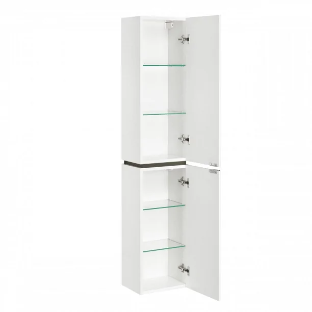 Шкаф-пенал напольный с двумя распашными дверками и выдвижными ящиками. В нижнем и верхнем отделениях - по одной внутренней полке. Ящики - на шариковых направляющих. Петли со встроенным доводчиком, ручки - 4 шт,, ножки хром - 2 шт,, ножки пластик - 2 шт.