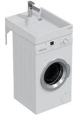 Раковина установленная над стиральной машиной является одним из самых оптимальных способов экономии полезного пространства в ванной комнате. Установка раковин над стиральной машиной является актуальной для небольших квартир в современных новостройках, апартаментах, студиях. Огромным плюсом также является то, что нет необходимости делать дополнительные коммуникации. Слив воды расположен в задней части умывальника и расположение сифона не мешает установке стиральной машины. Таким образом, все коммуникации собраны в одном месте.