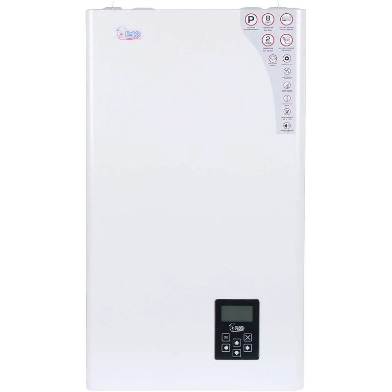 Электрокотел "РЭКО" отличается современным дизайном, надежной конструкцией (бак и тэны- нержавеющая сталь) и отличным функционалом (недельное программирование, счетчик расхода электроэнергии). Коммутация ТЭНов в котле осуществляется при помощи полупроводников — это гарантирует большой ресурс, бесшумную работу, исключает вероятность подгорания контактов и радиопомех. Группы ТЭНов позволяют выполнять равномерную трехступенчатую регулировку по мощности без перекоса фаз. Устойчиво работают при пониженном напряжении. Допускается использование котла совместно с системами «теплый пол» (точность датчика 0,5 С).