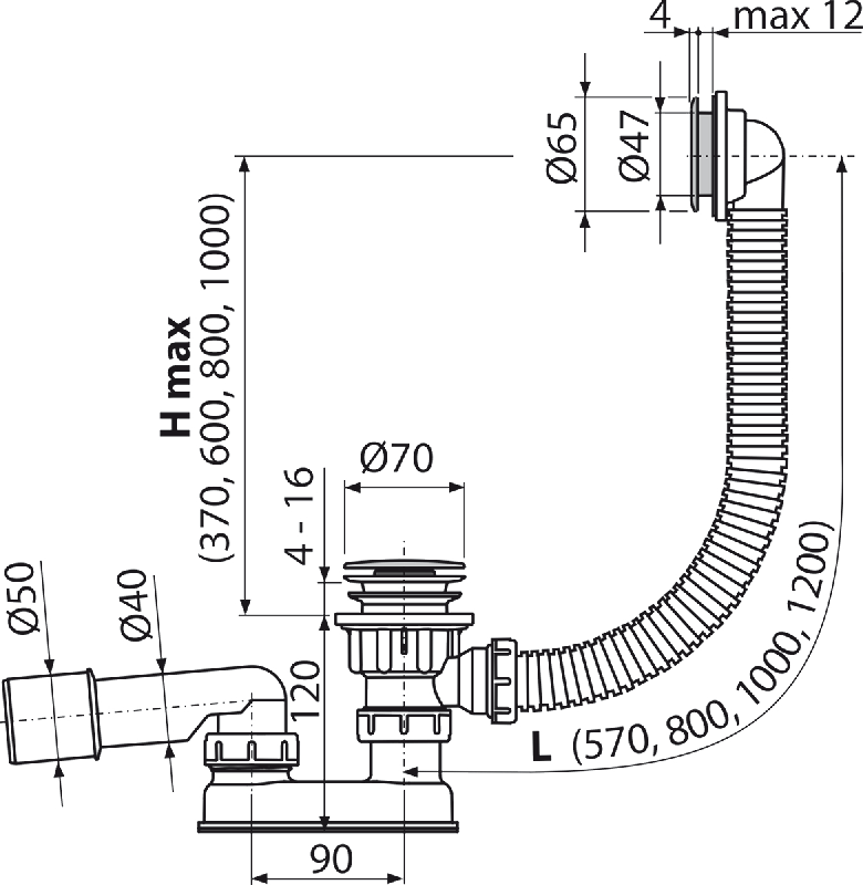 - Для ванн с выпускным отверстием Ø52 мм