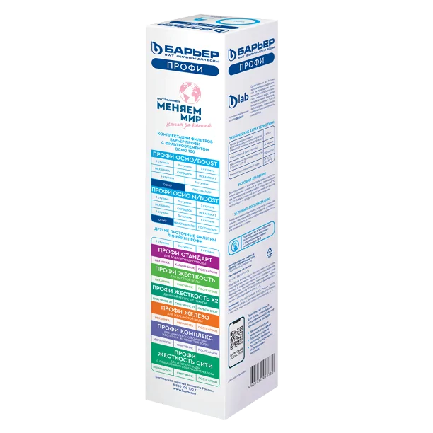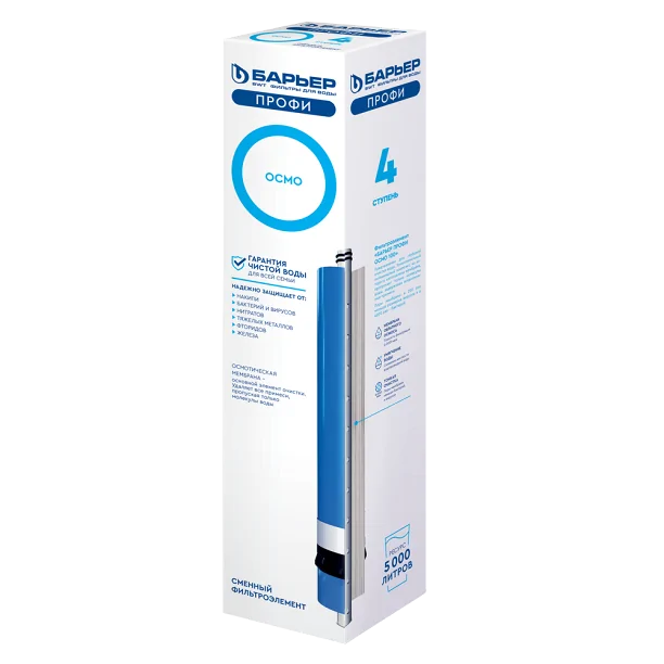 Сменный картридж БАРЬЕР ПРОФИ Механика 1 мкм используется в качестве третьей ступени в обратноосмотических фильтрах БАРЬЕР ПРОФИ Осмо 100, БАРЬЕР ПРОФИ Осмо 100 М, БАРЬЕР ПРОФИ Осмо 100 Boost, ПРОФИ Осмо 100 Boost М. Ресурс зависит от качества исходной воды, но не более 13 000 литров. Производительность 2 л/мин.