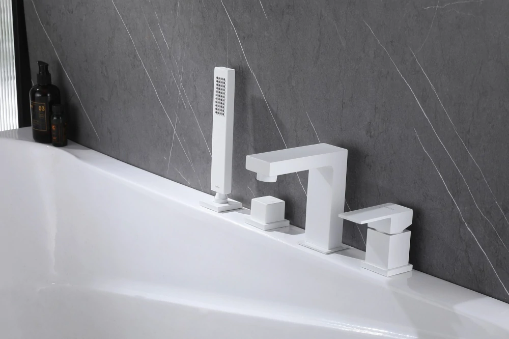 Смеситель ABBER Daheim AF8213W на борт ванны, белый матовый