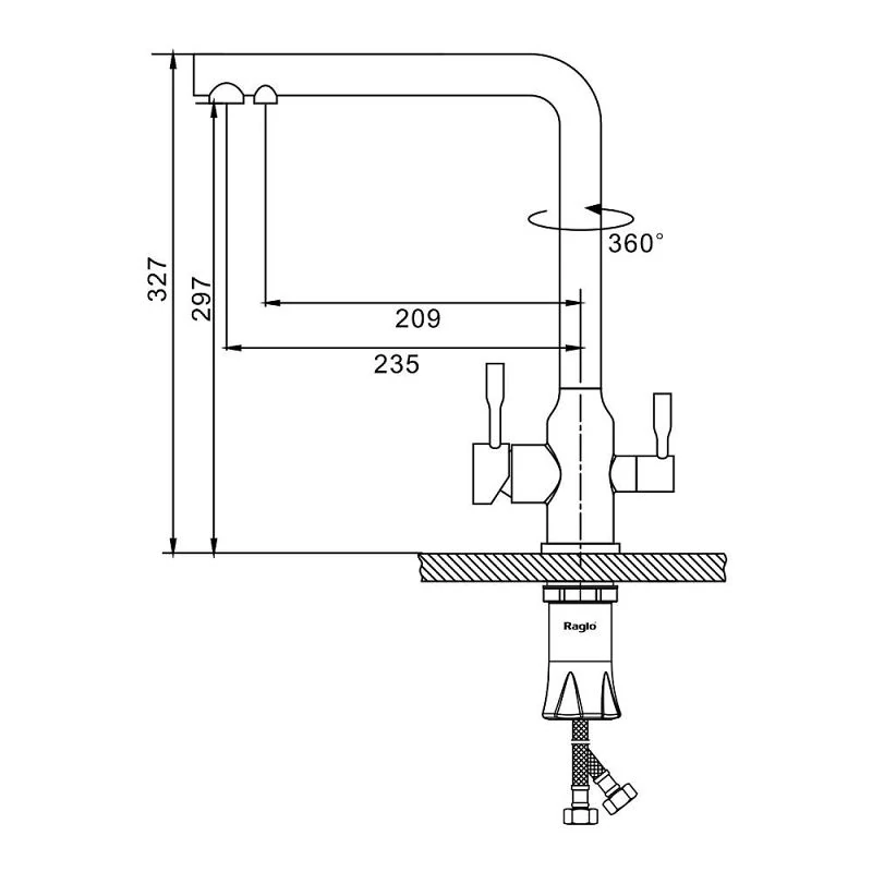 - Излив: поворотный (угол поворота 360 градусов), с каналом для питьевой воды.