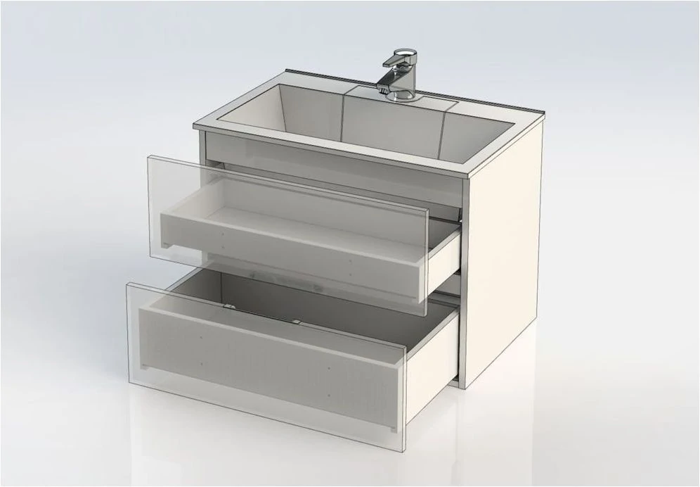 Тумба Акванет Алвита придаст интерьеру ванной комнаты нотку особого очарования и уникальности, благодаря своей нестандартной красивой отделке. Покрытие имеет высокие эксплуатационные характеристики, в частности влагонепроницаемость, прочность и простоту в уходе. Современный дизайн демонстрирует аккуратный минимализм геометрически четких форм, где основная идея подчинена максимальной функциональности. Вместительная тумба с верхним и нижним выдвижными ящиками создает дополнительное пространство, где будут надежно скрыты от влаги банные принадлежности. Ящики тумбы закрываются легко и бесшумно, благодаря механизму доводчика. Раковина «Фортуна» имеет уникальную конструкцию слива: вместо привычного расположения по центру, он находится в скрытом отсеке под съемной крышкой. Смещение слива и сифона к стене, в сторону канализационного отвода, избавляет от необходимости менять устройство верхнего ящика тумбы и делать в нем выемку. Теперь он свободно передвигается под раковиной и имеет большую вместимость.