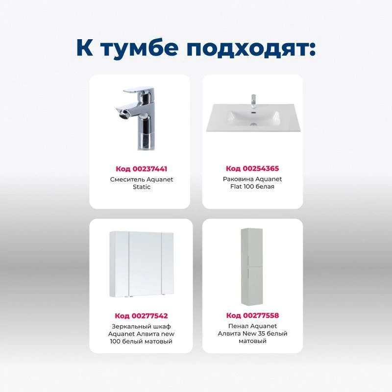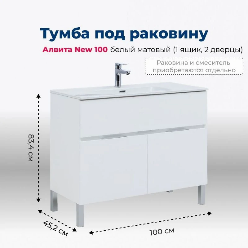 Доставка Тумба под раковину Aquanet Алвита New 100 1 ящик, 2 дверцы, белый матовый