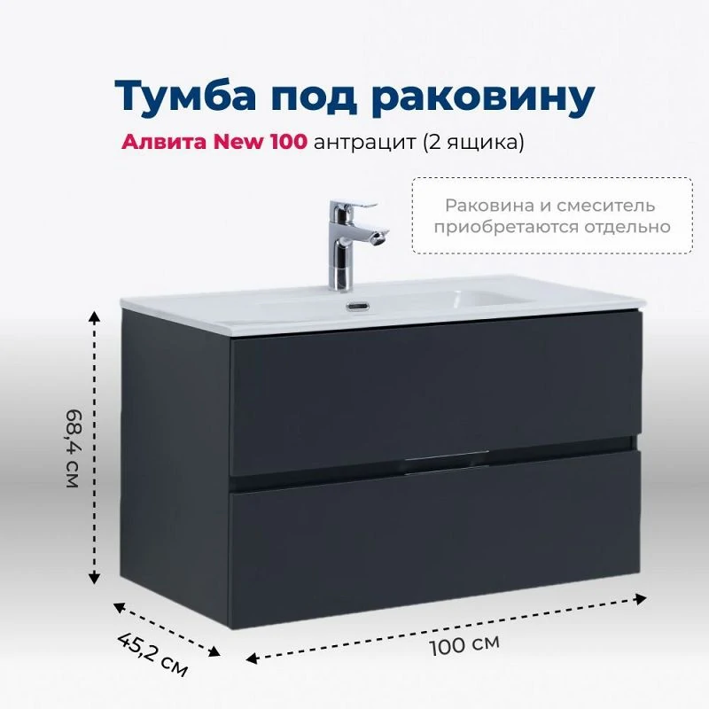Доставка Тумба под раковину Aquanet Алвита New 100 2 ящика, антрацит
