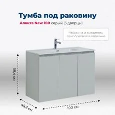Доставка Тумба под раковину Aquanet Алвита New 100 3 дверцы, серый