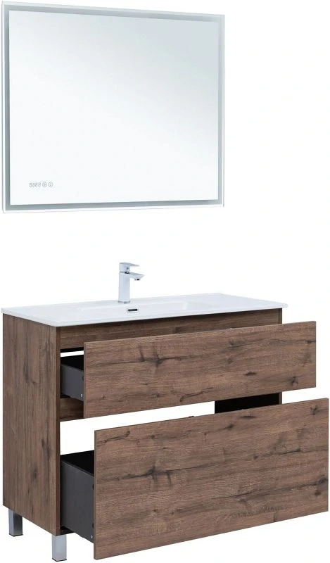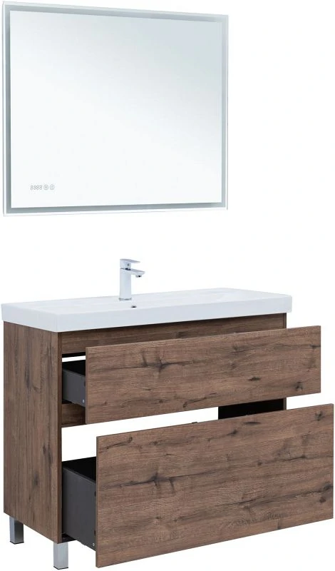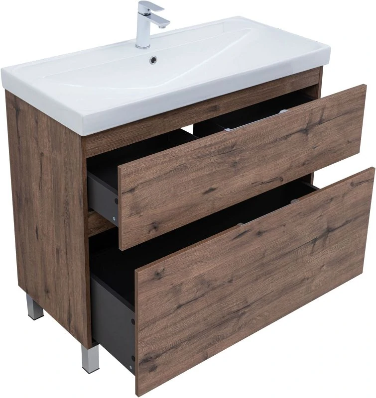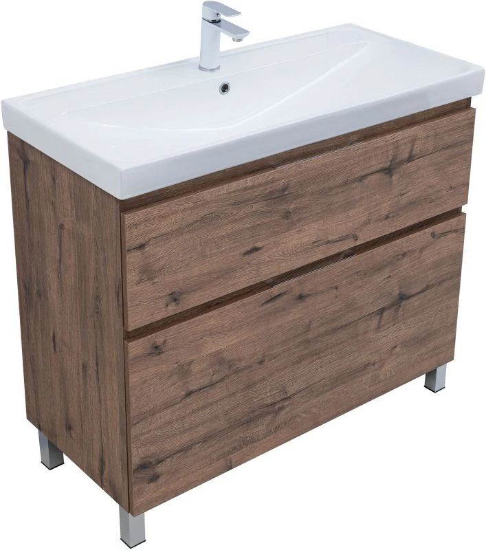 Тумба под раковину Aquanet Алвита New 100 напольная, дуб веллингтон табак