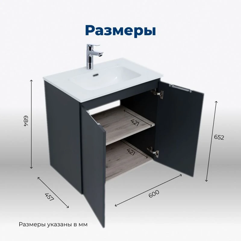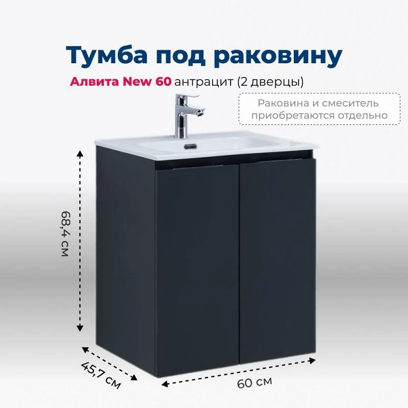 Доставка Тумба под раковину Aquanet Алвита New 60 2 дверцы, антрацит