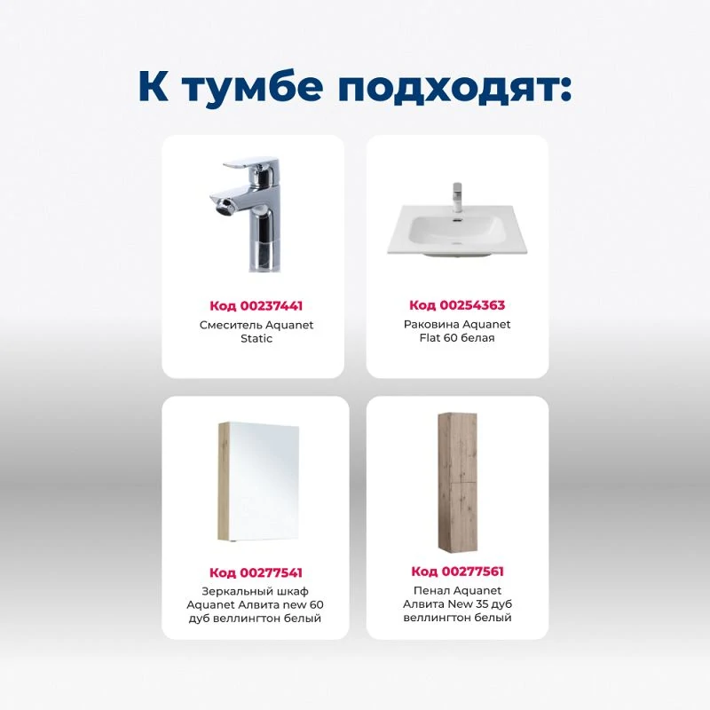 Доставка Тумба под раковину Aquanet Алвита New 60 2 ящика, дуб веллингтон белый