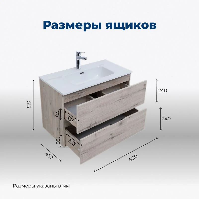 Тумба под раковину Aquanet Алвита New 60 2 ящика, дуб веллингтон белый