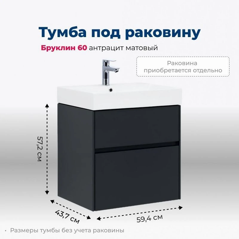 Доставка Тумба под раковину Aquanet Бруклин 60 антрацит матовый