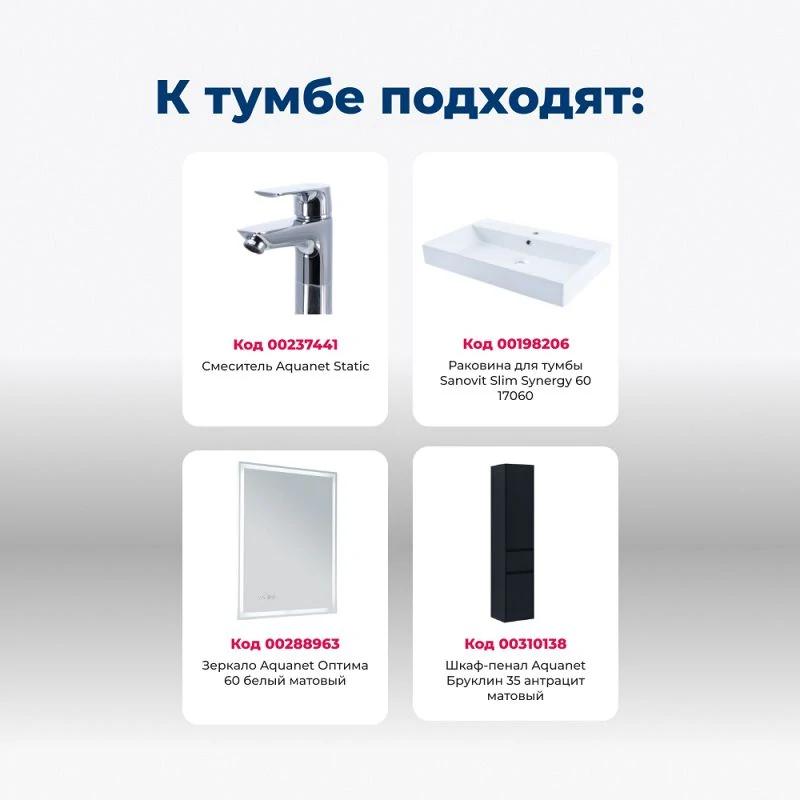 Отзывы Тумба под раковину Aquanet Бруклин 60 антрацит матовый