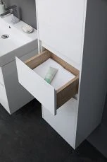 Тумба с раковиной Aquanet Бруклин 60 белого цвета предназначена для подвесной установки Изделие отвечает тенденциям минимализма Аскетизм четких линий и обтекаемых форм в ней доведен до совершенства В модели нет никаких выделяющихся деталей, и даже ручки интегрированные, когда открывание происходит за счет выступающей детали верхней или нижней части фасада, которая срезана под углом, в результате чего образуется выемка, служащая ручкой В тумбе ручка устроена таким образом у верхнего ящика в нижней части фасада, а у нижнего – в верхней Такое простое решение добавляет изысканности внешнему виду изделия Раковина из керамики с тонкими изящными бортиками идет размер в размер с тумбой, ширина которой 60 см, в результате чего все изделие выглядит как единое целое Корпус изделия выполнен из выкрашенного белой краской влагостойкого ЛДСП, фасады – из МДФ На контрасте с белизной внешних деталей стильно смотрится корпус выдвижных ящиков, выполненный в цвете «дуб сонома» Нижний ящик тумбы имеет большую зону хранения, верхний разделен на несколько отделений, которые помогут грамотно разложить все необходимое по своим местам