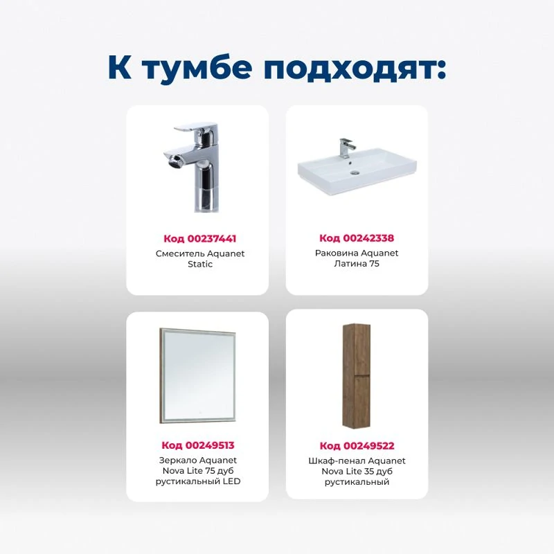 Доставка Тумба под раковину Aquanet Nova Lite 75 дуб рустикальный (1 ящик)