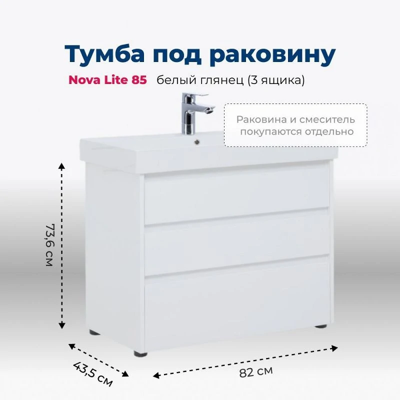 Доставка Тумба под раковину Aquanet Nova Lite 85 белый глянец (3 ящика)