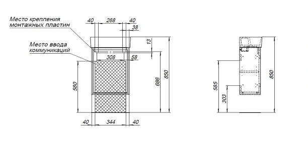 Тумба Aquanet Оптима 60 продумана до мелочей. В ней предусмотрено удобное место для подводки коммуникаций снизу, что облегчает установку и подключение сантехнического оборудования.