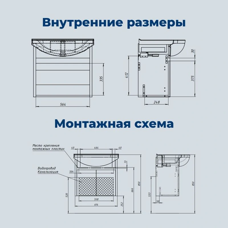 Практичные влагостойкие материалы обеспечивают долгий срок службы даже в условиях повышенной влажности. Пространство под тумбой организовано с учетом необходимости подвода коммуникаций, что делает монтаж удобным и быстрым.