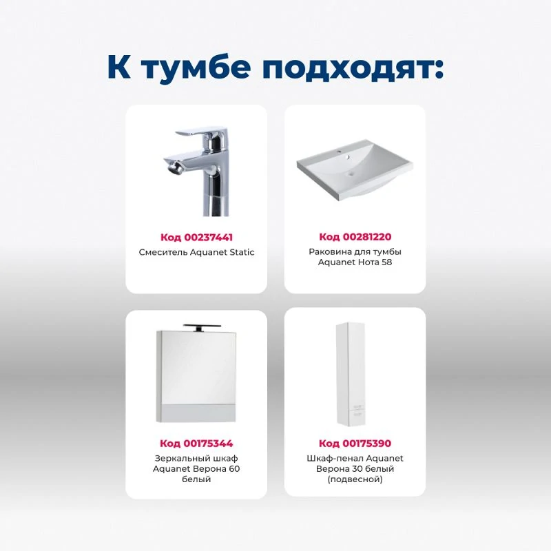 Доставка Тумба под раковину Aquanet Верона 60 белый (подвесная 2 ящика)