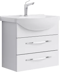 Подвесная тумба с раковиной Aqwella Аллегро 65 белая, с глянцевой поверхностью, с двумя выдвижными ящиками с хромированными ручками, для использования в ванных комнатах с повышенной влажностью.