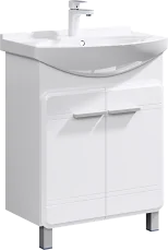 Тумба под раковину Aqwella Корсика 65 Kor.01.06 белая, с глянцевой поверхностью, с двумя ножками, с двумя распашными дверцами. Для использования в ванных комнатах с повышенной влажностью.