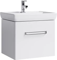 Подвесная тумба под раковину Aqwella Нео 60 Neo.01.06/1 белая, с глянцевой поверхностью, с выдвижным ящиком с хромированной ручкой. Для использования в ванных комнатах с повышенной влажностью.